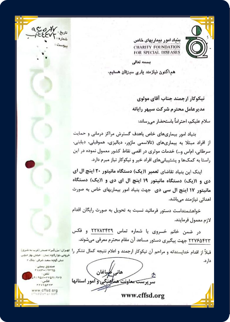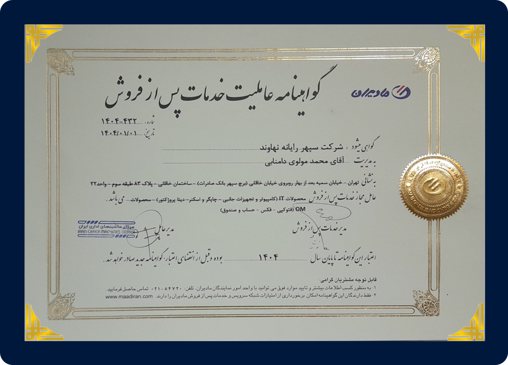 در تمام این سالها که از آغاز به کار سپهر رایانه میگذرد، همیشه تابع قوانین و مقررات کشورمان بودهایم و معتقدیم تنها در سایه قانون است که میتوان با آرامش فعالیت کرد. سپهر رایانه افتخار میکند که تمامی مجوزهای لازم را از مراجع ذیصلاح دریافت کرده است که در زیر میتوانید تصاویر آنها را مشاهده کنید.